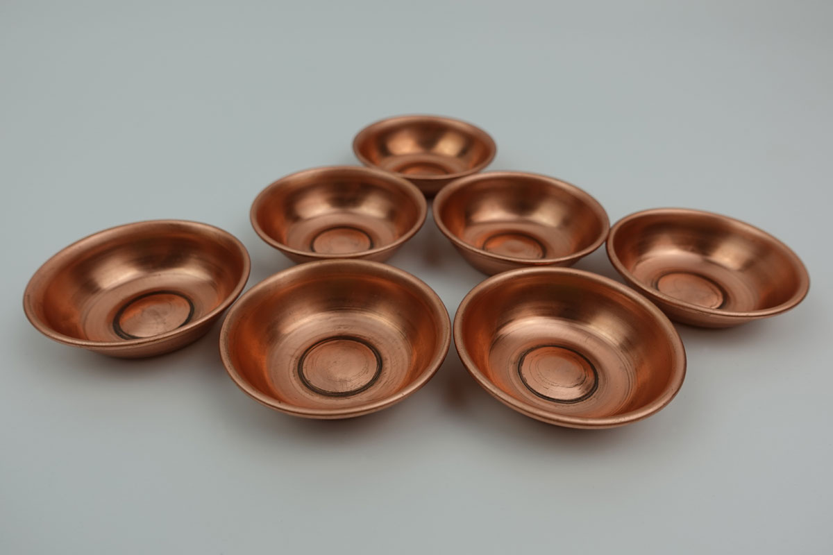 • Sada 7 měděných misek na darování vody.
