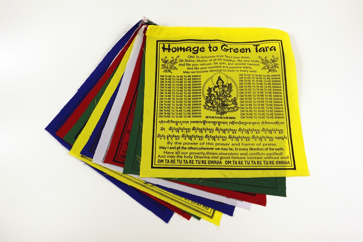 Lungty s vyobrazením Zelené Táry a s mantrou