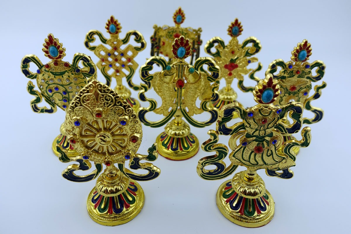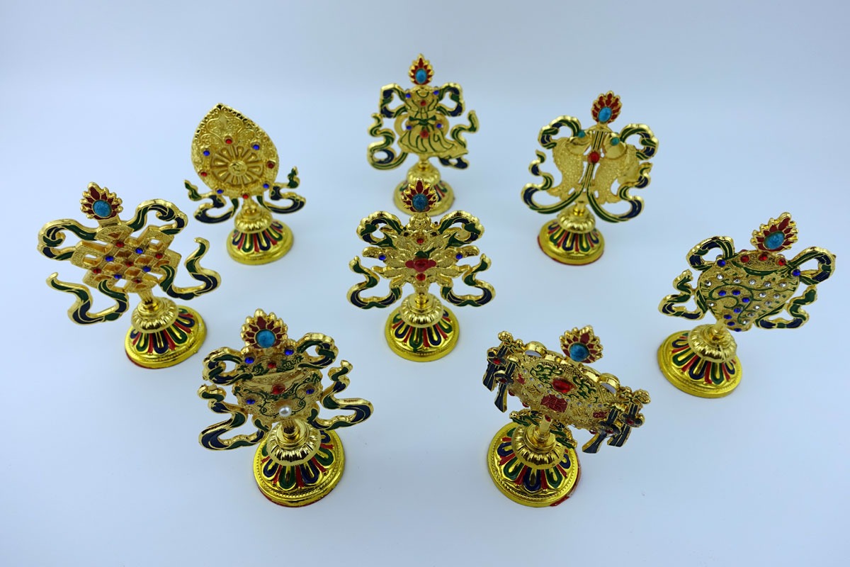 • Osm šťastných symbolů je tradiční buddhistický soubor posvátných znaků, které přinášejí štěstí, ochranu a duchovní rozvoj. Patří mezi ně: slunečník, zlaté ryby, váza, lotos, nekonečný uzel, prapor vítězství, kolo dharmy a lastura. Každý symbol má hluboký význam a společně vyjadřují harmonii a požehnání. Více informací v našem článku.